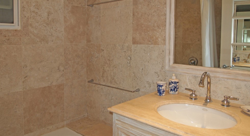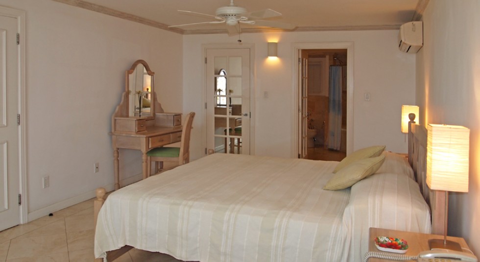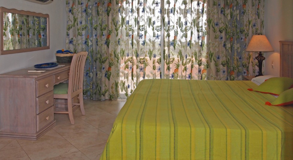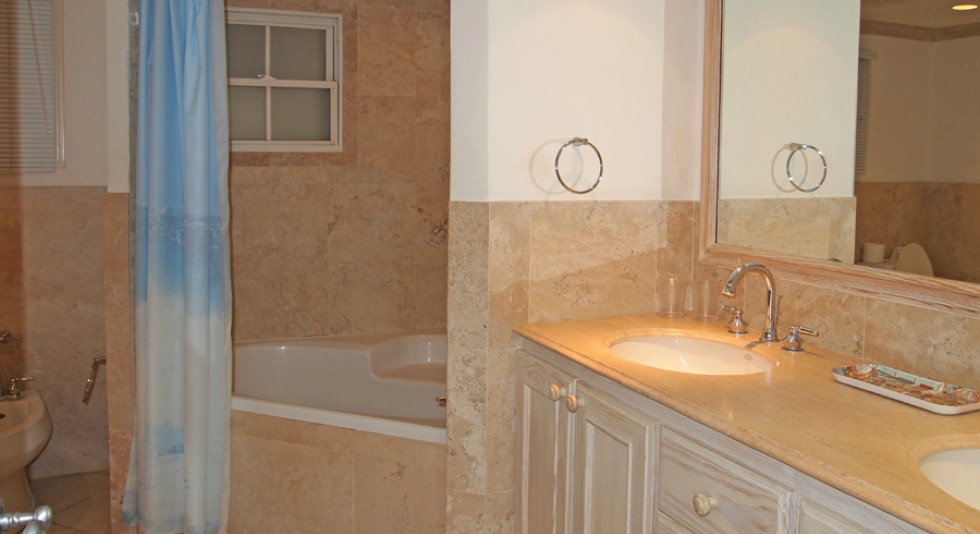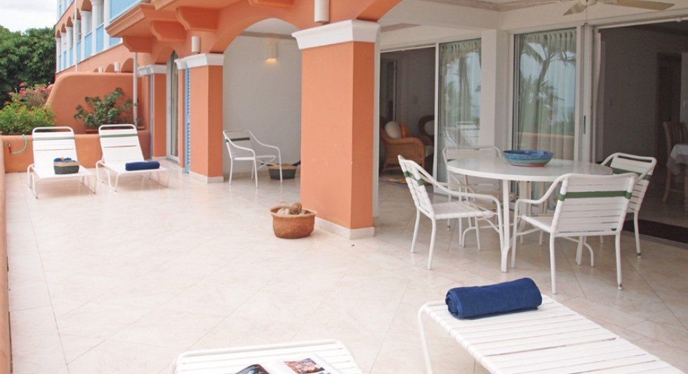 Unit 102 is a ground floor apartment with three bedrooms and three bathrooms. Β There is a large patio, great for families with children and for sunbathing with access directly into the pool through a door which can be kept locked if you prefer. Β All of the bedrooms have en suite bathrooms and have air conditioning as well as ceiling fans.