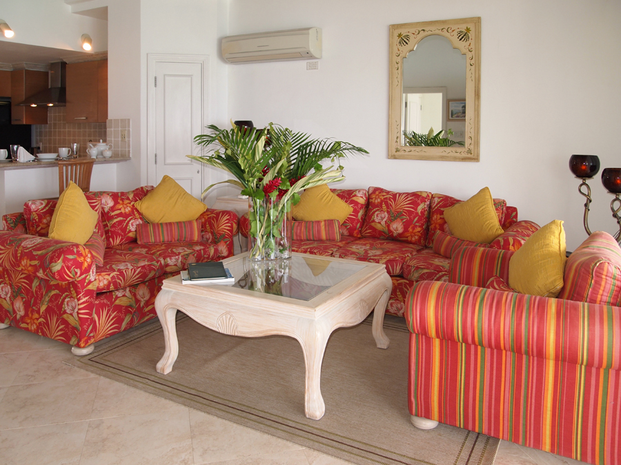 Villas on the Beach islocated on a beautiful West Coast beach in the heart of Holetown, St. James. This condominium development was designed by well known architect, Ian Morrison. Villas on the Beach offers an excellent array of amenities within easy walking distance – there are world class restaurants, bistros and beach bars as well as excellent duty free shopping, a large grocery store and a new 24-Hour Medical Center are all within easy reach. The championship golf courses at both Sandy Lane and Royal Westmoreland are only five minutes drive away. This penthouse apartment enjoys panoramic views over the turquoise Caribbean Sea. Watch spectacular sunsets from the private terrace or swim in the lagoon style pool community.The spacious living areas include a living room and dining area as well as a terrace. All of the bedrooms have air conditioning and ceiling fans as well as bathrooms en suite. The unit is equipped with cable TV, DVD, CD player and ADSL wireless internet connection. There is also a safe in the master bedroom for the storage of valuables. The villa is rented with a superb member of staff – her duties include housekeeping, laundry and most importantly, cooking for her guests! The perfect holiday! There is a Duty Manager or his assistant on property six days a week and after hours the complex offers on site security. Make Villas on the Beach 403 your preferred villa choice this year!