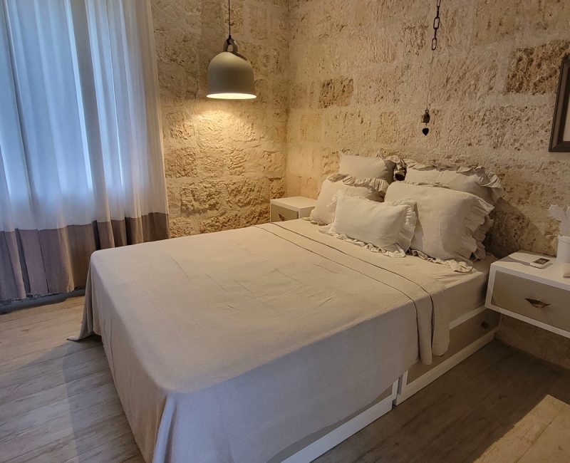 Built of coral stone and offering hardwood floors and a very high ceiling, these two features will make this a cool place to reside. You enter the cottage from the large covered patio/deck with banquette seating and additional patio furniture. There is a pergola just steps from this that will be ideal for al fresco dining. Cross the wooden walkway to the front door which has a koi pond underneath and step into the most enchanting interior. Modern kitchen with lots of counter space, electric hob and oven, refrigerator, etc. Part of the kitchen that leads to the back door has floor-to-ceiling cupboards and a countertop under the window, also with cupboards – no shortage of storage in this kitchen! The kitchen is open plan and faces into the living room. The corridor leads to the bedrooms and bathrooms. The guest bathroom is in the corridor and the master bathroom is en-suite to the very spacious master bedroom. Both bedrooms are air-conditioned and have ceiling fans.