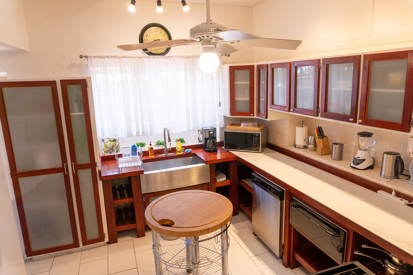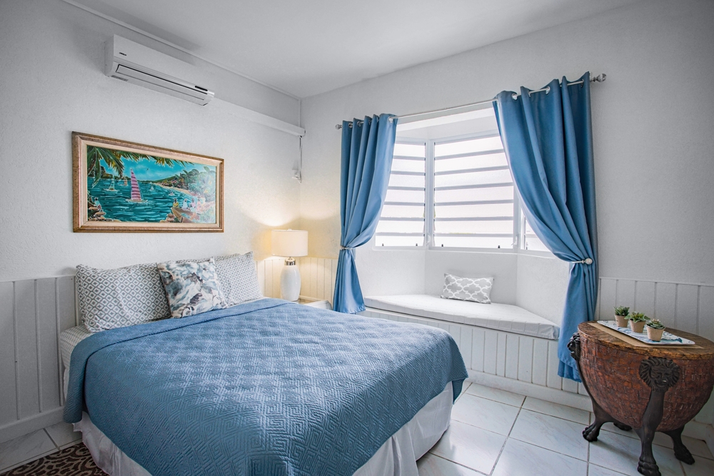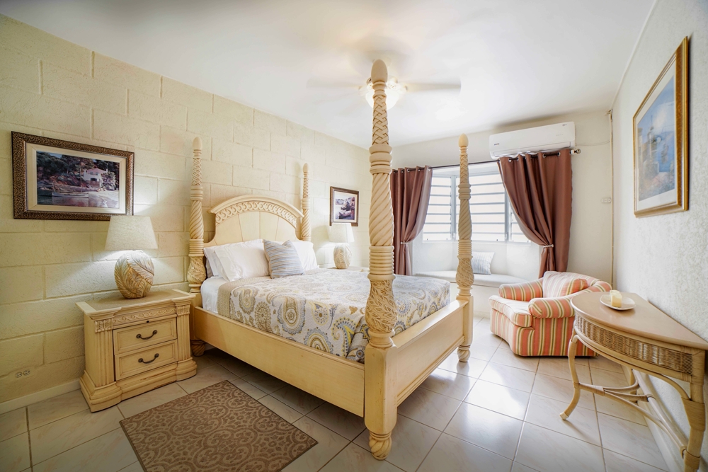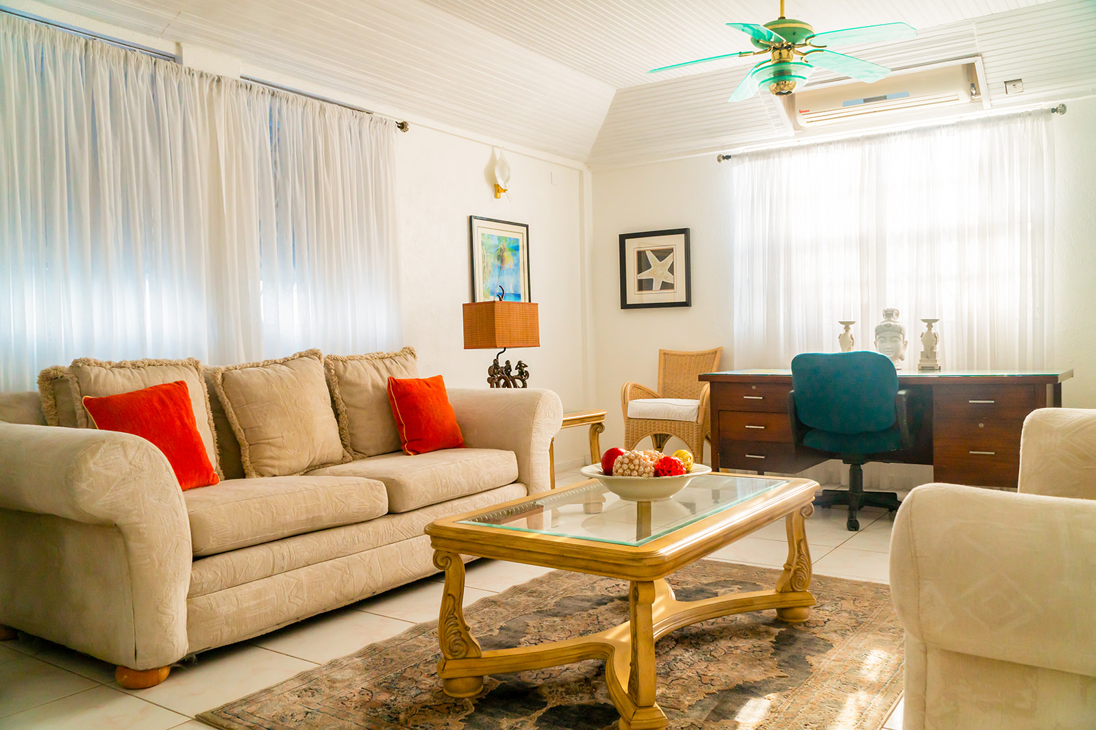 This tastefully furnished three bedroom beachfront villa, with two ensuite bathrooms and one external bathroom, is located on the idyllic Brandonβs Beach, St. Michael. The interior is spacious with an airy open plan design, with double living rooms flowing into a smaller dining area, adjacent to the kitchen. There is a small laundry room with a washer and dryer near to the bedrooms and kitchen. The kitchen is a modern style with adequate storage and a handy kitchen island cart placed in the middle. All three bedrooms have queen-sized beds, are air conditioned and have ceiling fans, with cozy window seats and adequate closet space.