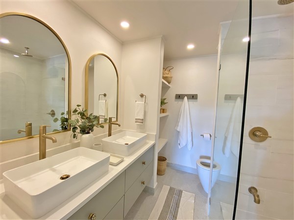The unit also has A/C and ceiling fans throughout and is equipped with all appliances including a mini dishwasher and washer/ dryer.