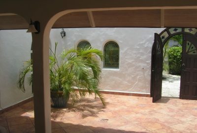 A nicely finished 2 bedroom, 2 bathroom townhouse in a good residential area in a quiet cul-de-sac. Entering via a kitchen complete with appliances, pickled pine cupboards and a breakfast bar area, you extend to the dining area. There is a separate air conditioned living area which leads out one way to a small patio, and the other to a large enclosed courtyard area with a shared plunge pool. Upstairs the master bedroom is about 11 x 10 with an en suite bathroom with a bathtub, while the second bedroom is somewhat larger and of a unique shape. Each bedroom has both an a/c and ceiling fan, and the nearby second bathroom has a shower in it. The property has security grills and is located within walking distance of lovely south coast beaches. The property is being offered with appliances only, but the owner would also consider renting it furnished. The price includes water, as well as pool & garden maintenance. Available from July 1, 2015.