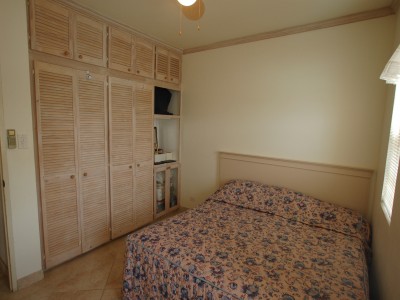 Upstairs the spacious open plan kitchen faces into the living and dining area that leads out to a large balcony that runs the entire length of the southern side of the villa with stairs down to the ground floor patio and views out to the beach and ocean which is in walking distance. There are three bedrooms and two bathrooms on this level, the master bedroom has a walk-in closet and large en-suite bathroom. The apartment downstairs has a very large covered patio ideal for entertaining with a wet bar, infinity swimming pool with fiber optic lighting and Jacuzzi. There is also a half bathroom on the patio near to the wet bar on this level.