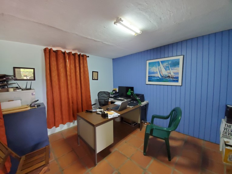 The main house is upstairs, with 3 bedrooms, 2 bathrooms, and high ceilings, open plan living and dining, which are just off of the well laid out kitchen. There is a lovely greenheart patio perfect for relaxing with excellent breezes in this area. The master bedroom has an en-suite bathroom and walk in closet as well as AC. The other two bedrooms share the second bathroom which tub shower and laundry shoot, and there are ceiling fans throughout.