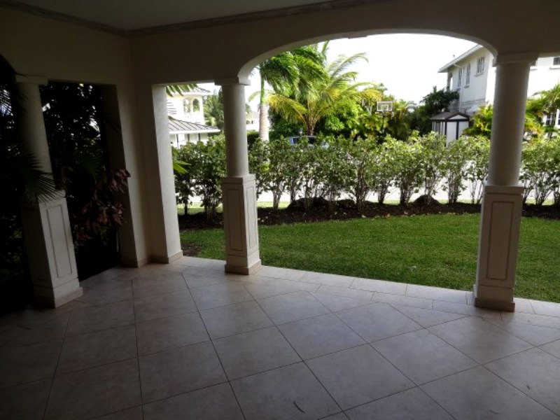 A tastefully finished and very spacious 3 bed, 2.5 bath ground floor condo located in the beautiful gated community that is Millennium Heights. An elegant and roomy kitchen complete with granite countertops, stainless steel appliances and a nice breakfast bar, leads to a huge open plan living and dining area that flows out to a large sheltered patio with an open garden area. The master bedroom is approximately 15 x 15 and to one side of the unit with a walk-in closet, a small private patio and an en suite bathroom with a shower and double vanity. The other two bedrooms are about 14 x 14 and 13 x 12 with built-in cupboards, with the former also having a private patio. These bedrooms share a spacious bathroom with a bathtub and a double vanity, and all three bedrooms offer both ceiling fans and an a/c. The unit also has a large laundry room with a stackable washer/dryer, a powder room and security grills to all windows. The development is extremely expansive and offers access to a shared swimming pool, two lit tennis courts, a clubhouse with a gym and a walking track. Warrens with all its many amenities is just a couple minutes away.