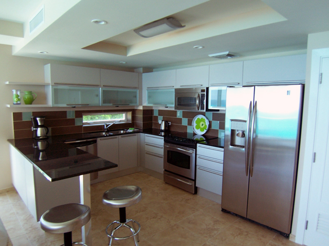 are a comfortable 1400 square feet of beachfront luxury. Each sizeable bedroom has built-in closet space and its own en-suite bathroom, one with glass enclosed shower featuring a rain-style showerhead and the other with tub/shower. The complete Italian kitchens with āLā shaped granite kitchen counters also act as a breakfast bar and share the incredible ocean view with the living rooms which open out onto the balcony with large all glass doors. Because of the glass design, just opening the curtains gives you the feel of being right there on the beach and you are surrounded by stunning views.