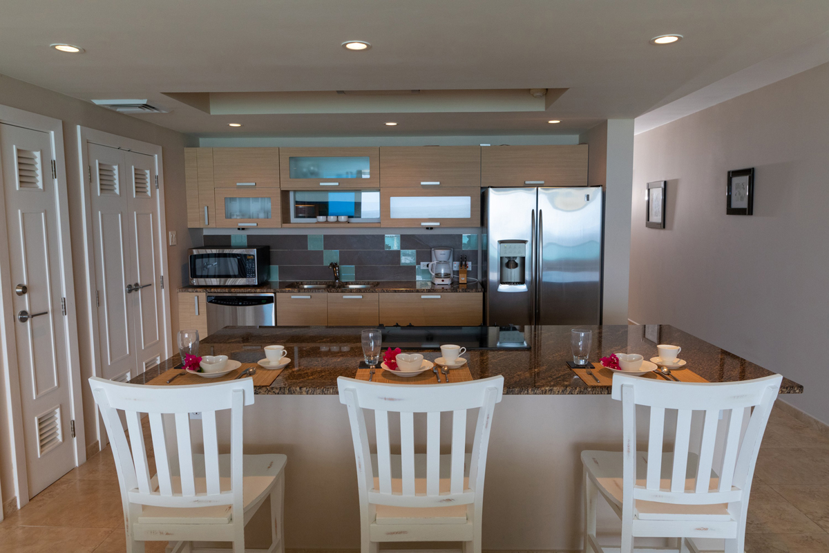 502 is an exquisitely furnished, three bedroom, three bathroom center unit located on the fifth floor. As with all units at Ocean One, it features a large balcony with a breath-taking, panoramic ocean view.