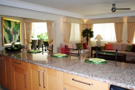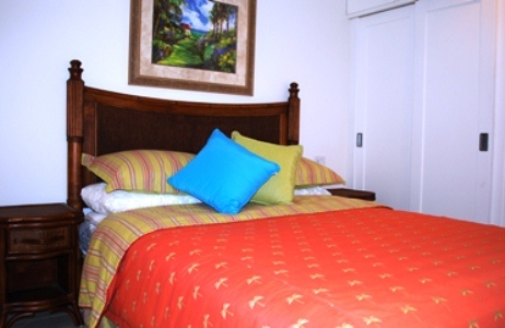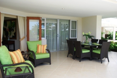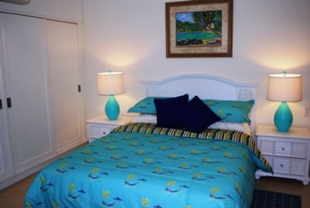 This condo is well outfitted with a comfortable open plan kitchen/living area offering a well equipped kitchen with casual seating at the granite countertop while the beautifully furnished lounge area is spacious and leads out to the covered patio which offer outdoor dining and lounge chairs for relaxing while looking out to the beautiful tropical garden with the pool just a few steps away.