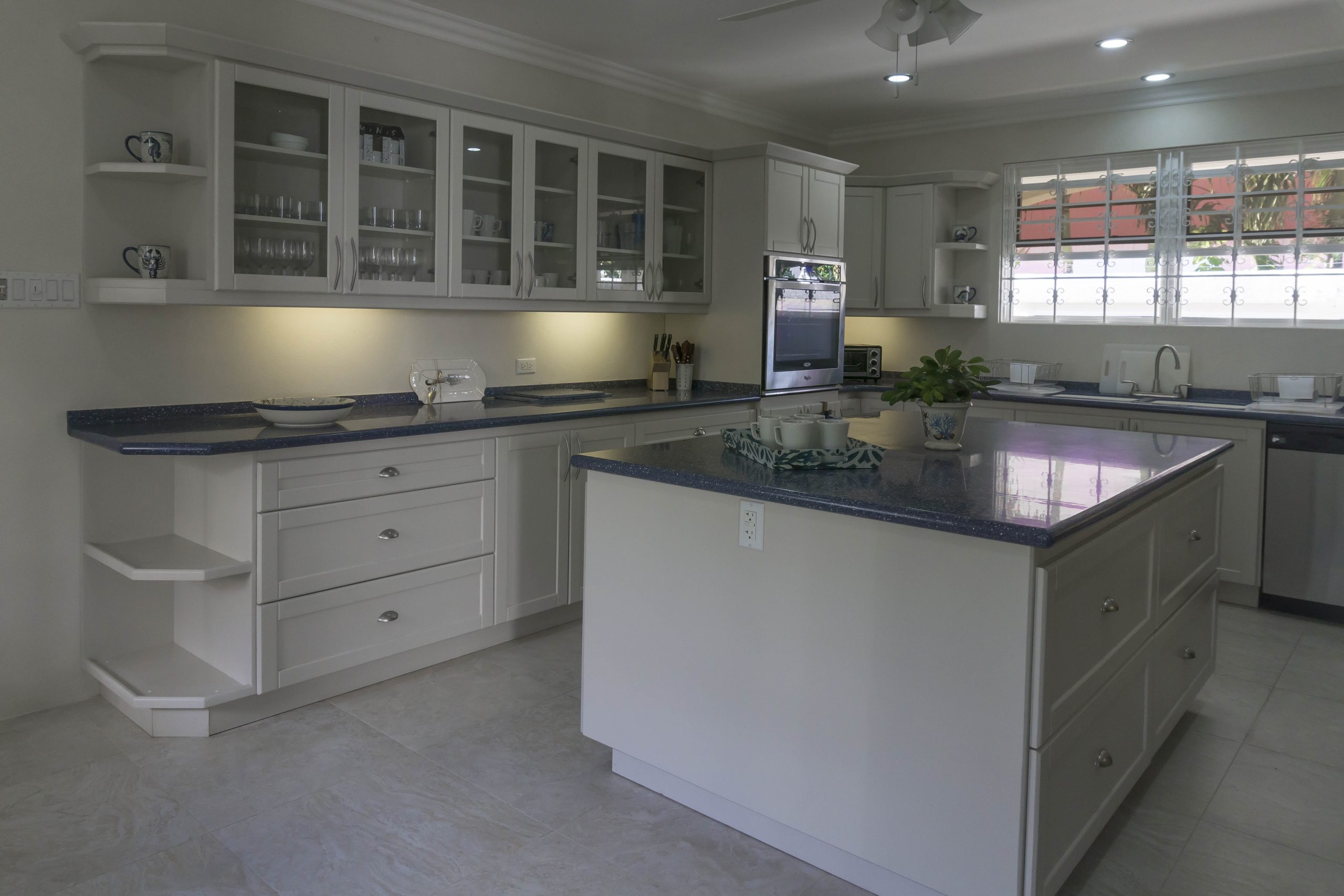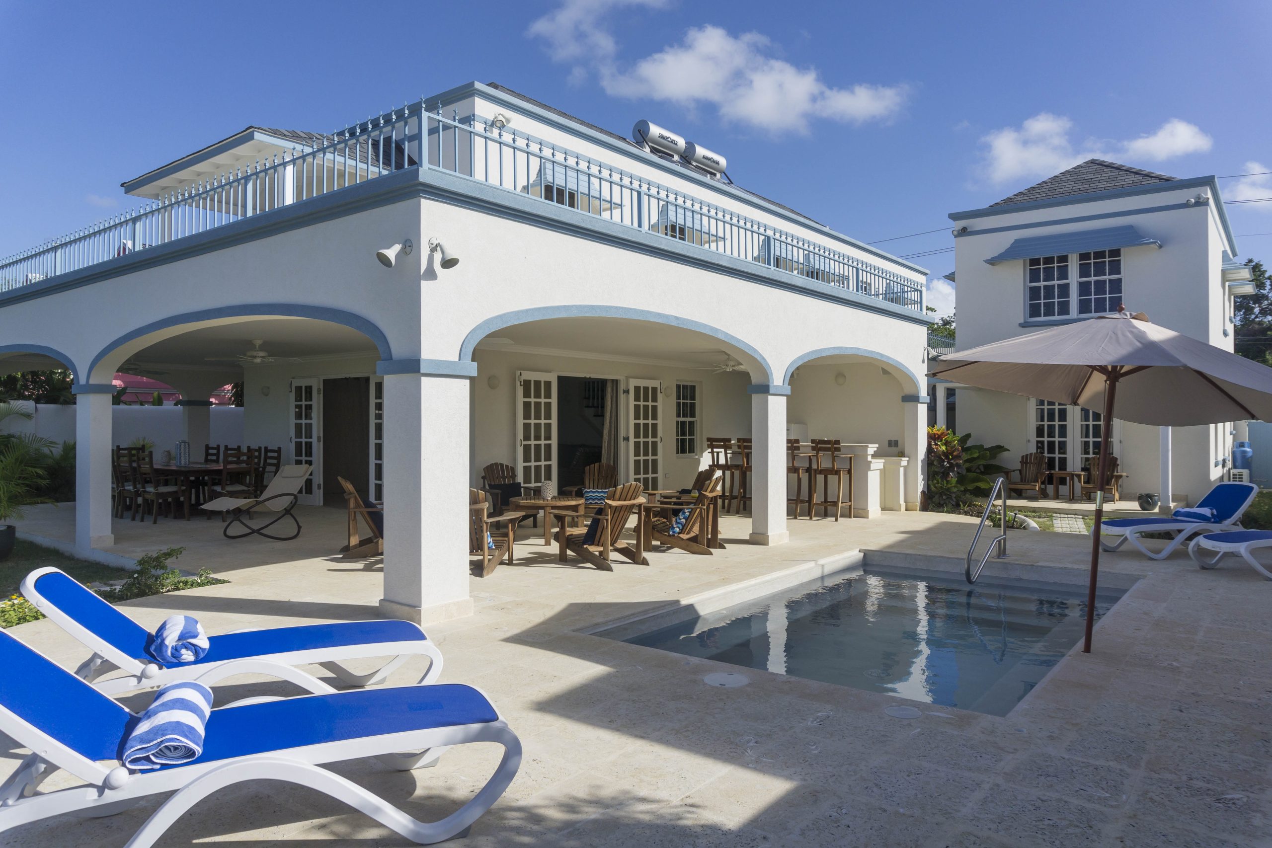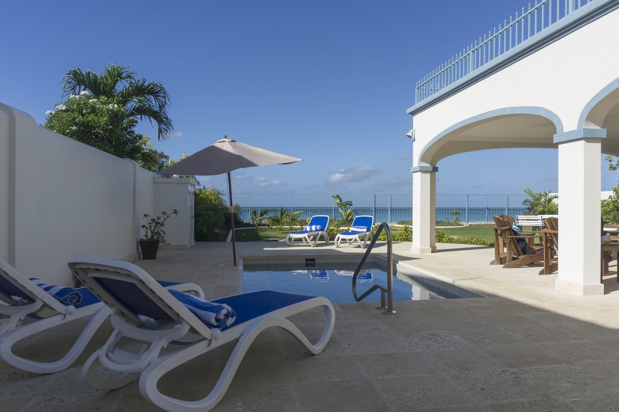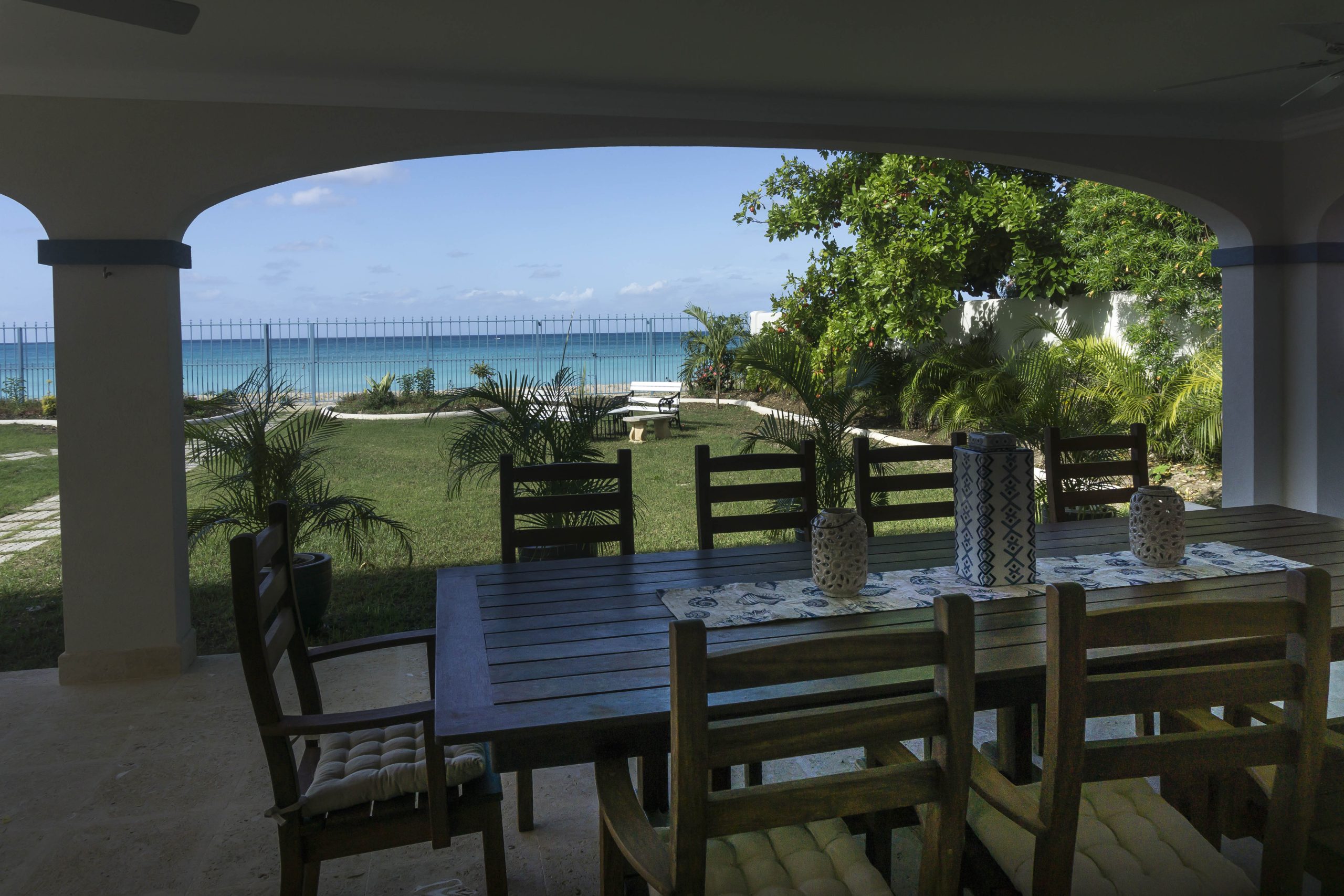 Sandgate House is a beautiful, newly built, 3 bedroom, 4 bathroom, fully equipped beachfront property offering in excess of 2,000 sq.ft of comfortable living space. It is located to the North of our Bridgetown Harbour and is just a few minutes drive to Warrens or Holetown with many amenities including golf at the world renown Sandy Lane Golf Course. One can enter the property from the parking area via solid front door or electronic garage access. Immediately the essence of this detached property with its combination of Caribbean and contemporary flare is noticed. The owner has given consideration to relaxed living and entertaining in that the kitchen with its granite countertops and island is just off of the main living area with quaint dining. The entire lower level has a wrap around covered passageway leading onto a generous covered patio, lounge and dining area all offering unobstructed views of our white sands and glistening ocean. There is a salt water plunge pool and deck just off of the lounge area, perfect for tanning, and the bar is conveniently positioned between the kitchen and the deck. Just a few steps away one can paddleboard, snorkel or just laze and enjoy the gentle lapping of the ocean. The upper level offers two bedrooms to the East of the stairs, both have en-suite bathrooms with shower; one has built in closets and sleeps four – ideal for teenagers or children, while the other has a kingsized bed, built in closets and additional chest of drawers. The Master bedroom located towards the West has an en-suite bathroom with shower and walk in closet. Via full French doors one has access onto the large open patio overlooking the sea, truly a great space to sit and enjoy your surroundings or those romantic nights together. The bedrooms are air conditioned and have ceiling fans and flat screen TV’s, the property has security grills throughout, an alarm system managed be a reputable security firm and beautiful garden to the West. Generally peaceful this wonderful property is airy and comfortable, well suited to many. Great sea bathing and paddle boarding; horseback riding nearby and golf a few minutes’ away, coupled with blissful sunsets and cool breezes topped with lovely sunshine can only add to an already anticipated holiday.