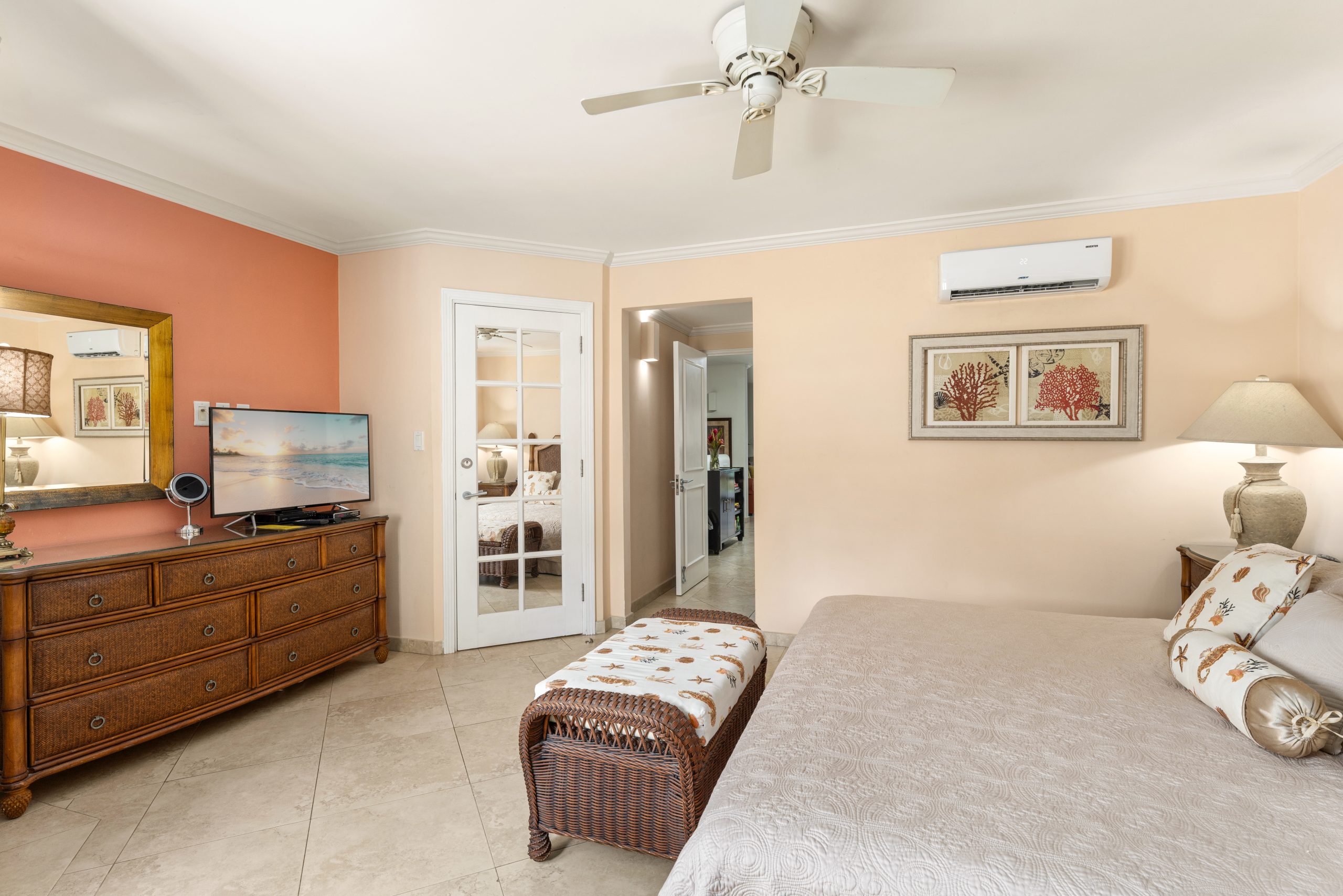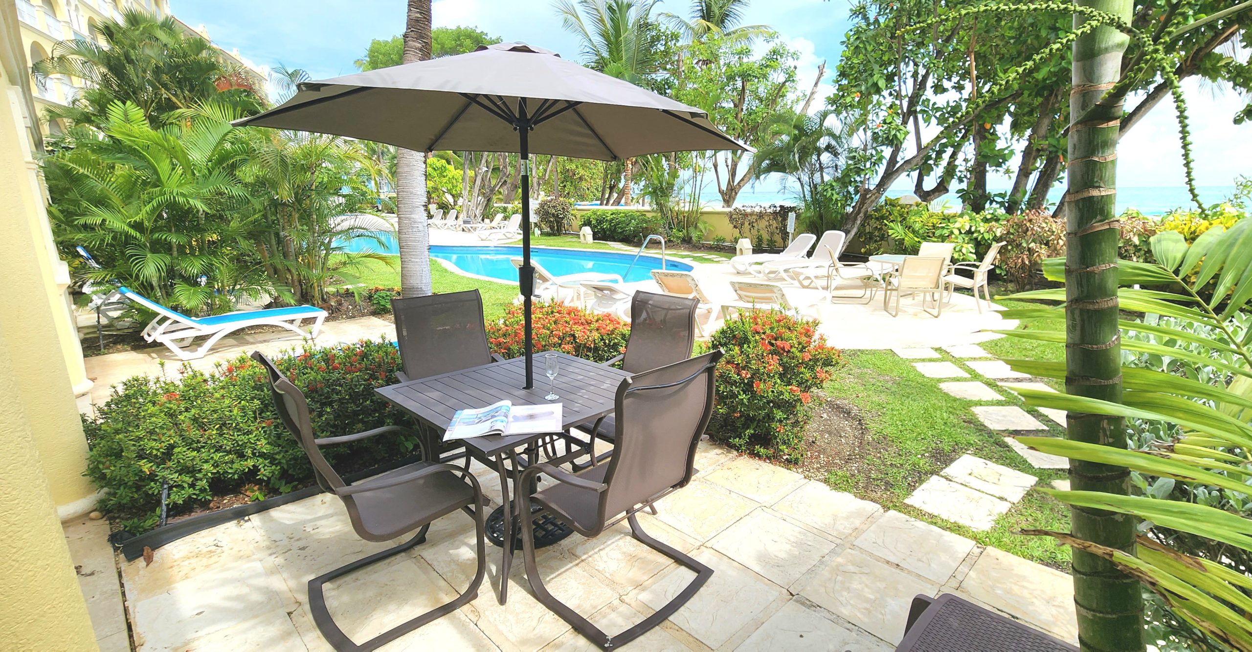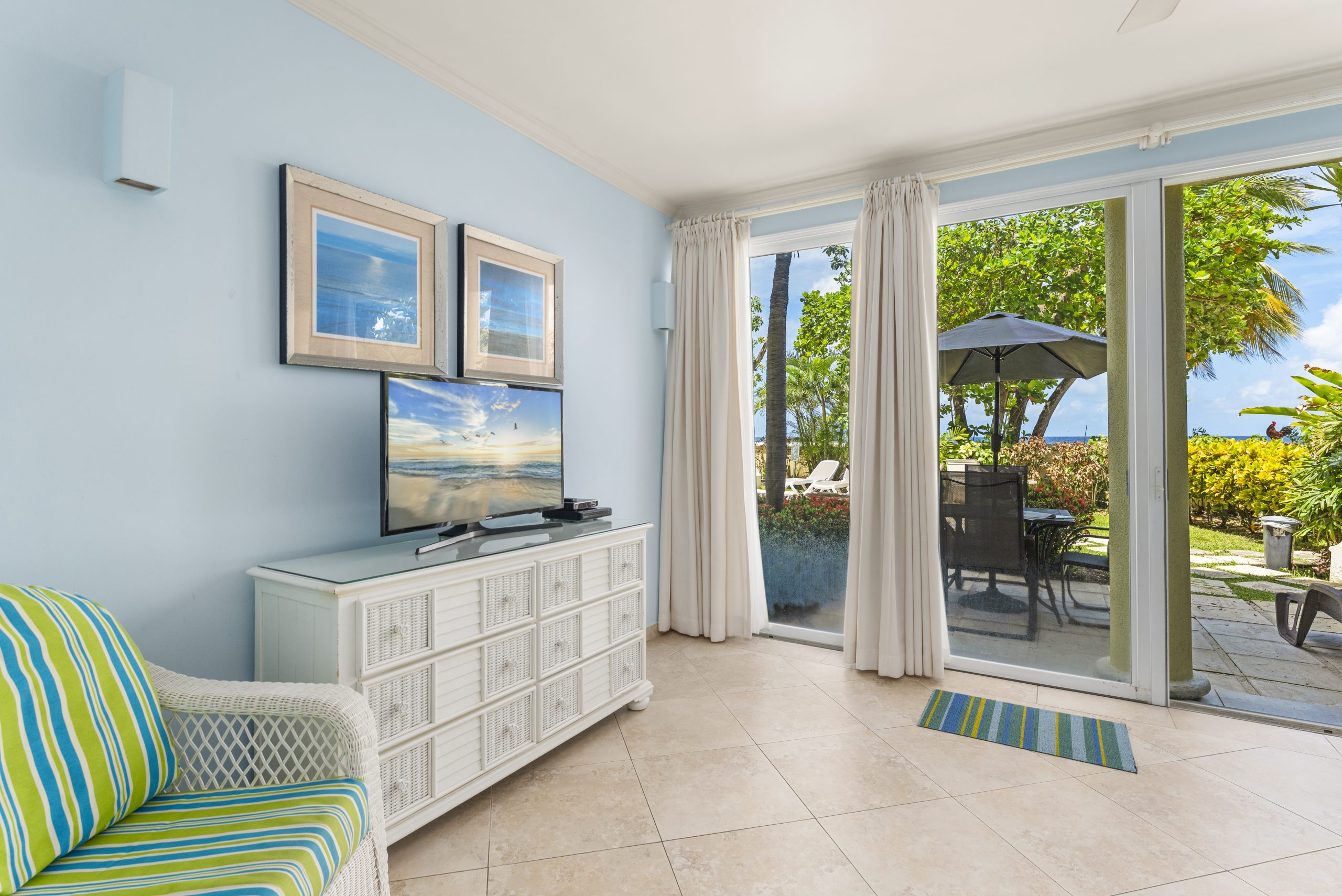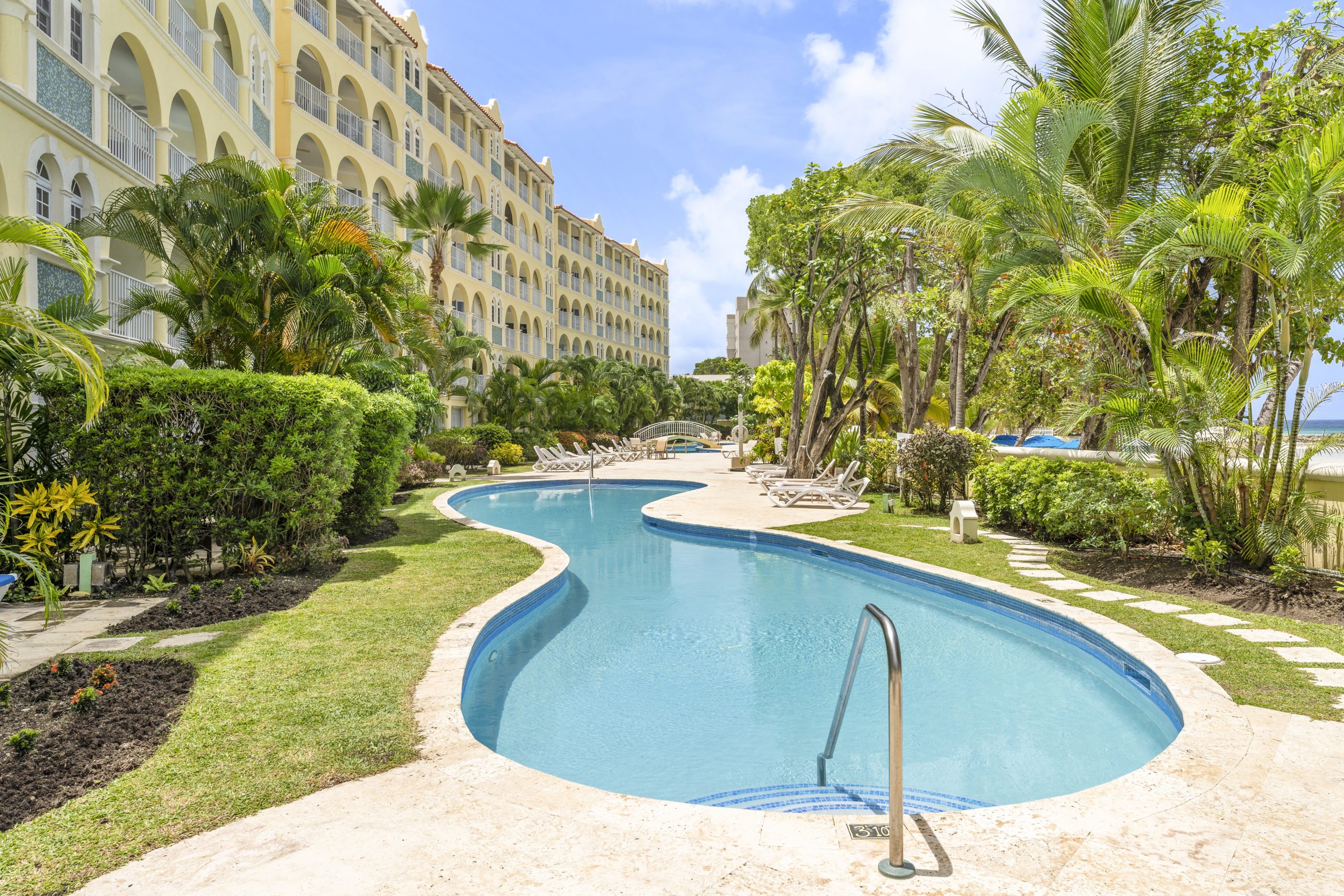 Sapphire Beach Barbados is perfectly located on the fabulous Dover Beach in Christ Church. This 54-unit complex designed by renowned architect Ian Morrison has over 370 feet of beach frontage. Unit 101 is the only 2-bedroom unit that has a view of the entire Dover Beach from the balcony!