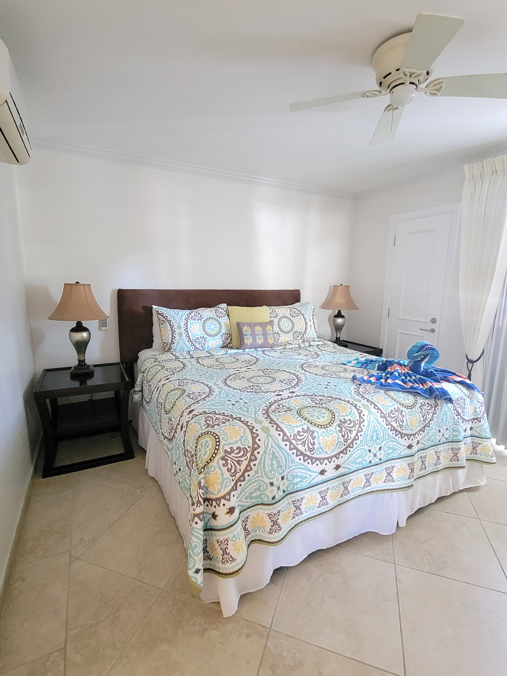 The two bedroom apartments at Sapphire Beach are almost 1700 sq.ft of beachfront luxury are quite unique featuring a split level design on the ground and first floors of the building. The entrance and the master bedroom are on the ground level of the apartment, with the latter having direct access to the pool deck and gardens. On the upper level is the living room, kitchen, second bedroom and balcony, offering excellent views overlooking the pool to the beach and ocean beyond.