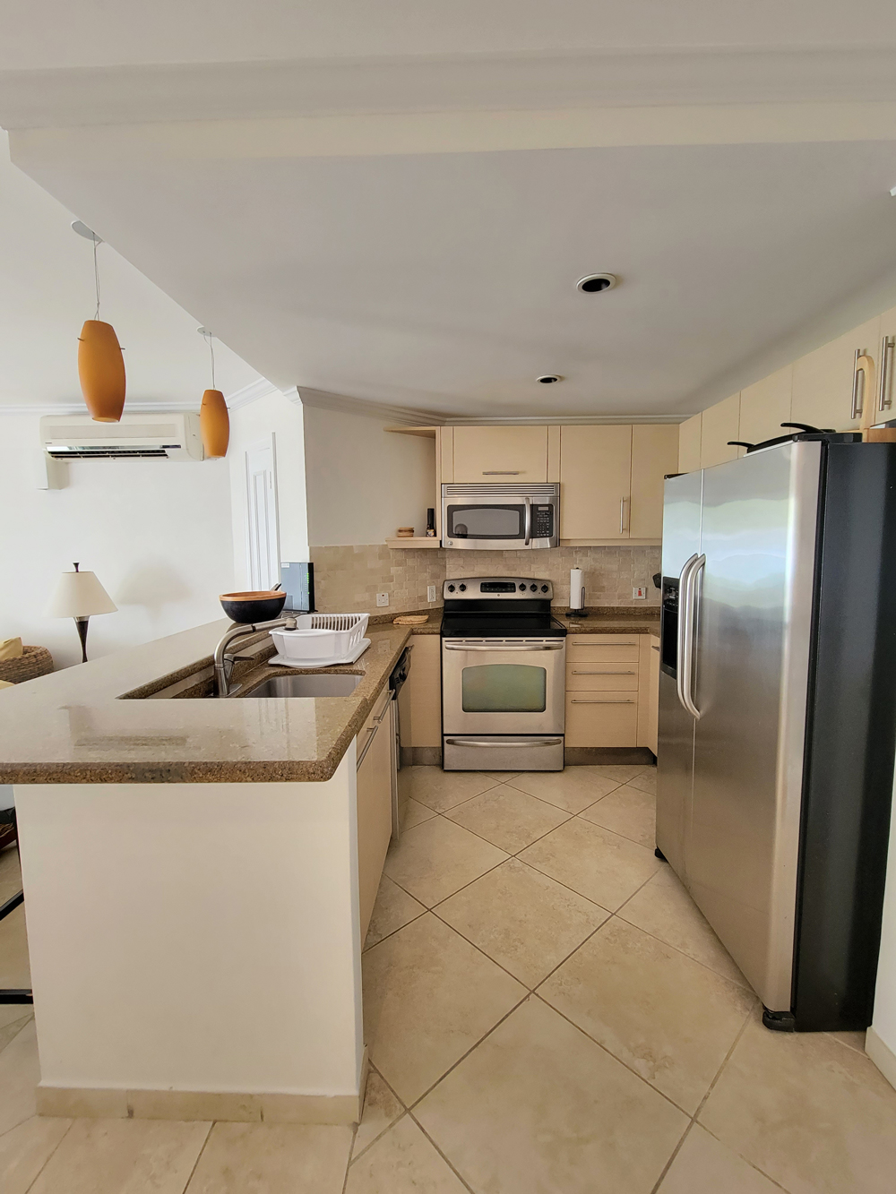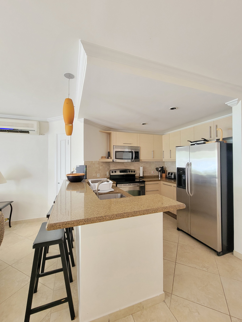 All units are equipped with a full appliance package (washer/dryer included) and include superbly designed Italian kitchens and air-conditioning as well as ceiling fans in all rooms. The finishes are luxurious and show top quality craftsmanship including the granite counter tops and porcelain floor tiles. Most importantly the ocean view from every unit at Sapphire Beach is incredible. The property includes shared amenities such as two large kidney shaped swimming pools (170ft of pools) with boardwalk bridges leading to the beach, an elevator, gated and private driveway and parking facilities and .a state-of-the-art on-site gym with some of the latest fitness equipment and machinery.