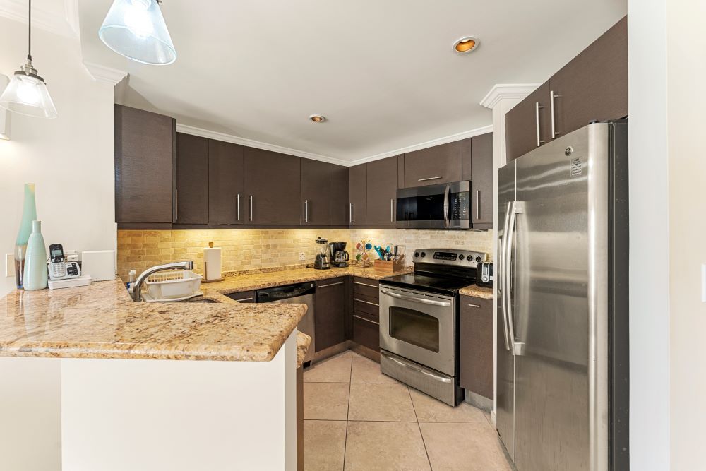 The master bedroom is en-suite with large walk-in closets and sliding doors leading to the covered living room balcony where you can enjoy full ocean views. Bedroom two is also en-suite with his and her sinks and walk-in closet. Bedroom three / study is adjacent to a full third bathroom with a shower.