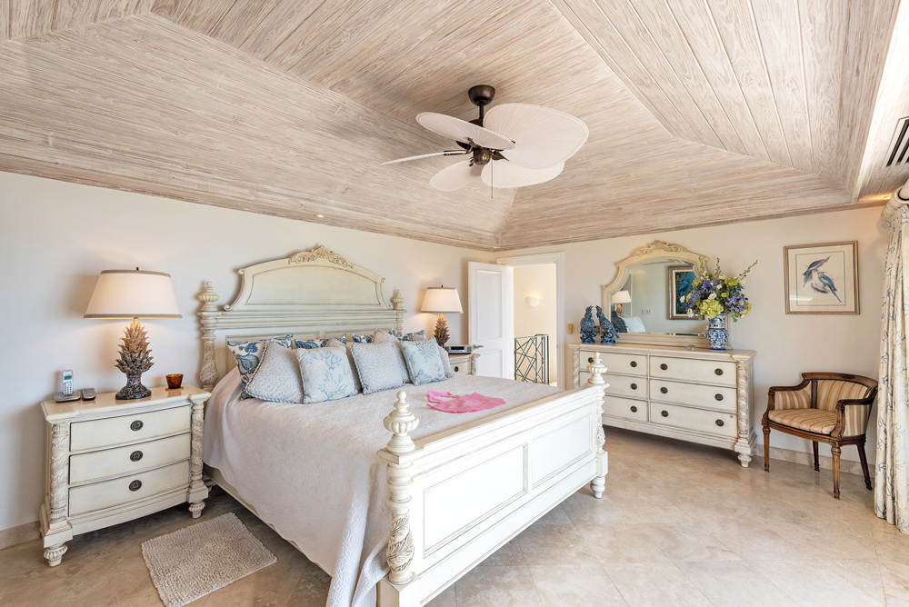 6. Bedroom 2, called âPineapple Bedroomâ has an Emperor bed and a walk-in wardrobe. There is also a large en-suite marble bathroom with a Jacuzzi bath and large separate shower. It opens onto a terrace and balcony, with picturesque views of the sea and the freeform swimming pool.