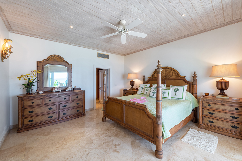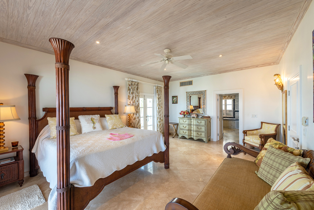 7. Bedroom 3, called âSunburst Bedroomâ, contains an Emperor bed, excellent marble bathroom with walkthrough wardrobe. Jacuzzi bath and large separate shower. Opens onto terrace with spectacular views down the beach and out to sea.