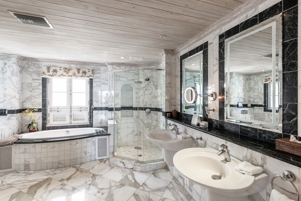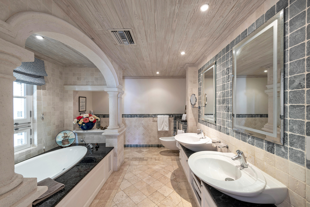 Travertine marble floors throughout and marble-tiled bathrooms. All fittings and furnishings are of the highest quality, with an emphasis on deep comfort.