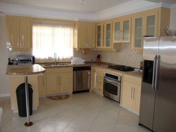Attractive 3 bedroom, 2 ½ bathroom tastefully furnished townhouse with amazing views of Durants golf course. This property offers a generous floor plan, tile floors and granite countertops throughout. From entry on the ground floor, there is a laundry room with washer and provision for a dryer, powder room, big pantry by the lovely kitchen with stainless steel appliances and wine rack , open plan dining and living areas plus the rear patio which is great for relaxing. Upstairs features the bedrooms and full bathrooms, two bedrooms with their own private patio, two linen closets, the master bedroom includes a walk in closet and en-suite bathroom with his and her sinks, Jacuzzi and stand up shower. Fantastic breezy location near the airport, Oistins, the city, beaches, shops etc. A security system, garage and external storage are some of the other features available.
