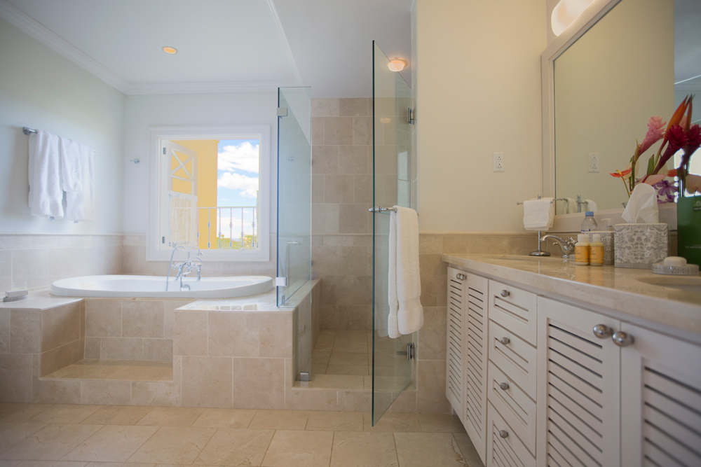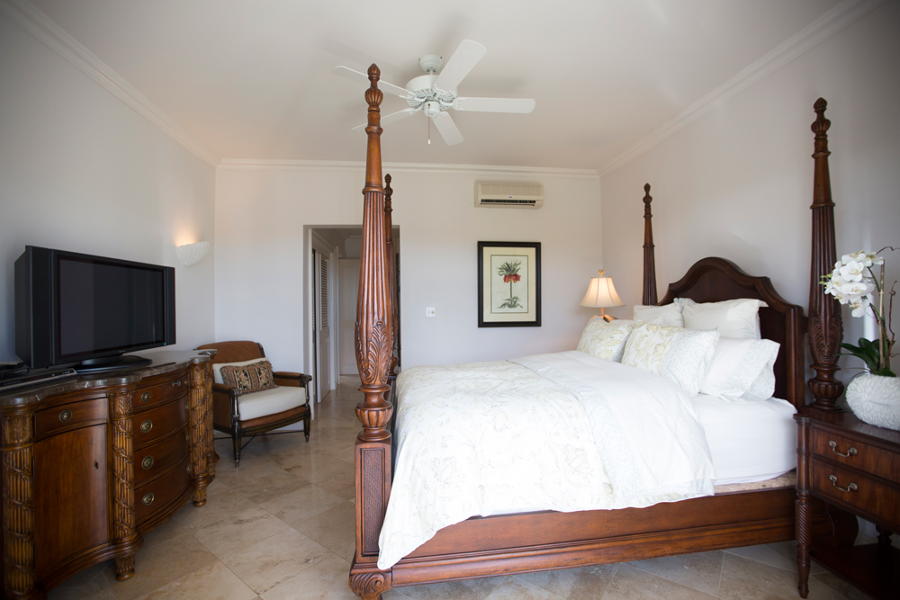 The five bedrooms, all of which en-suite, are allocated over the 3 levels of the property. Bedrooms 2 and 3, located on the lowest level of the property, offer a shared patio and have direct access to the pool deck. Bedrooms 4 and 5, located on the main floor of the property with both featuring cable televisions and access to a shared patio. The Master Suite, located on the 3rd floor offers partial views of the coast line and the pool deck below. All bedrooms offer air-conditioning and ceiling fans and are equipped with hair dryers.