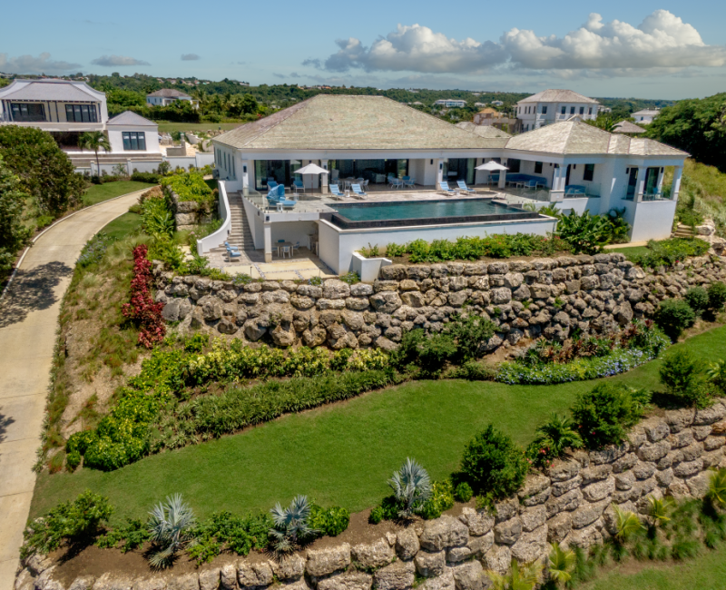 Boasting panoramic views over Barbadosβ famous west coast, this is an imposing residence designed with entertaining in mind. An expansive terrace surrounds the large infinity edge pool β perfect for enjoying a cocktail as you watch the sunset over the Caribbean Sea. Descend a staircase and a private bar and entertaining area is revealed underneath the pool and overlooking the terraced gardens.