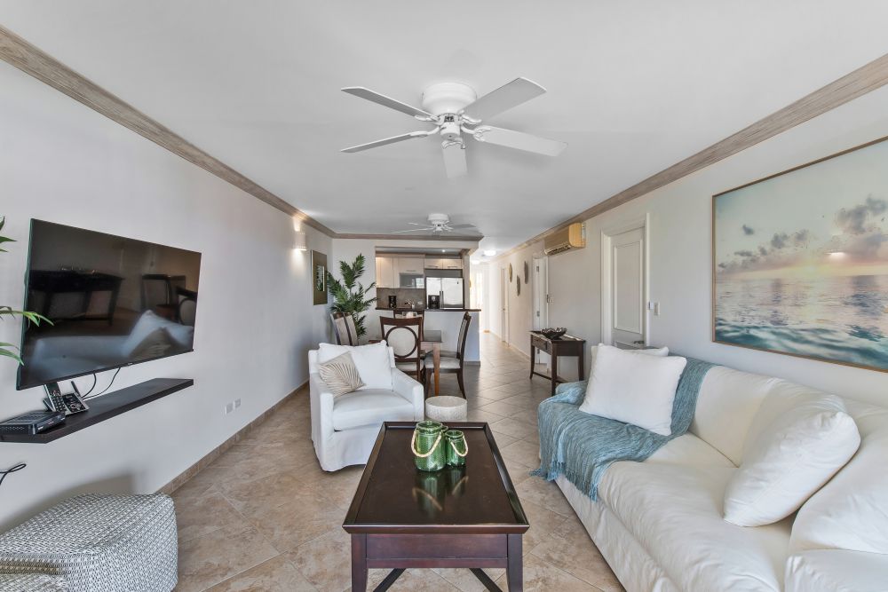 Guests will enjoy ocean views from the balcony, ideal for morning coffee or evening cocktails. The apartment is equipped with modern appliances, high ceilings, ceiling fans, a washer and dryer, and secure elevator access. With designated parking and a central location near restaurants, bars, shops, and nightlife, Terraces 401 offers an exceptional Barbados getaway for travellers seeking both tranquility and adventure