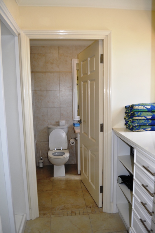 bathroom and to the left are the separate enclosed water heater and electrical