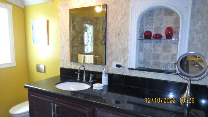 Enter the house via a coral stone paved walkway with warm and shaped lighting at night. They are two koi ponds, one of which could be converted into a swimming pool. Photo Voltaic solar system, stand-by generation, and backup water supply are very handy. Home stands on approx. 1.3 acres