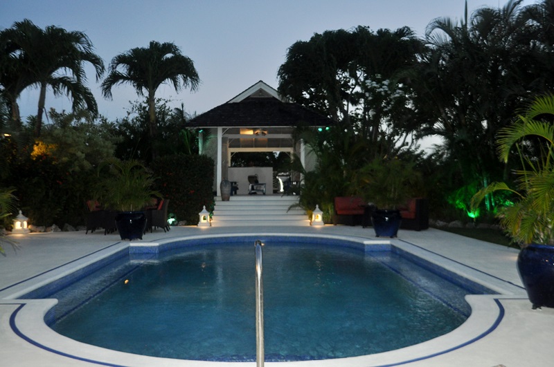 This beautiful, two storey, 4 bedroom, 4.5 bathroom fully furnished property radiates that familiar warmth of home filled with love, care and infectious joy. It sits on approximately 70,000 sq.ft of orchestrated manicured gardens with lovely paths and finished with perfectly positioned lighting effectively illuminating what can be considered an enchanting ambiance. This immaculate home offers aesthetically pleasing finishes and easy flow. Located in a garden nook opposite the front door is a lovely waterfall which greets you upon your arrival. The entrance is adorned with a glistening crystal chandelier, you are then welcomed into the entrance foyer which has the guest powder room finished with marble tilework on its left and onward through two squared columns into the lovely great room and sitting area. The great room offers a formal twelve seater classic dining table and buffet, it has soft lighting by sconces along with recessed lighting and there is direct access onto the covered terrace through two double doors framed with fine drapes and the kitchen is a few steps away. The sitting room also offers direct access to the patio. The kitchen is towards the South of the property and is fully equipped with stainless steel appliances including a dishwasher, double sinks, beautiful cabinetry and it gives access also to the covered terrace where one can enjoy alfresco dining. The kitchen has access to a generous store room / pantry with a full staff bathroom down the hallway and also to the enclosed backyard with laundry area, additional storage and separate pool house. Towards the East on this Southern wing is the guest suite which offers a private entrance and can also be accessed from the kitchen hallway. This guest suite has a small foyer; an en-suite bathroom with single vanity and shower; it is air conditioned; very spacious and elegantly furnished; it includes a queen sized bed and built-in closets; it has a lovely tray ceiling with recessed lighting and also has beautiful baked aluminum grilled sash windows with arched top finished with push our jalousie shutters. The Northern wing of the property offers tucked away storage; a lovely lounge area towards the West offering a high hipped roof finished with crystal chandelier, jalousie windows – this space is also set within the covered terrace and is accessed from the hallway; there is an air-conditioned private office; the second air-conditioned bedroom with built in closets and en-suite bathroom with single vanity and shower and the third air-conditioned bedroom now being used as an entertainment room with a walk-in closet and en-suite bathroom with tub and separate his / hers vanities. The Master suite with separate his and hers closet space is located on the upper level, it has an en-suite bathroom with separate his and hers vanities, a tub and separate shower. This space offers a sitting area, a king sized four poster bed facing the West which gives views of beautiful sunsets and twinkling nights and a covered porch with some sea views and overlooks the magnificent gardens and pool area below. The covered terrace offers an alfresco dining area, a bar area and the lounge area all of which have views of the pool deck and gazebo with bar. There is a serenity space just off of the Gazebo with plush seating and meditation Buddha in presence, this is an ideal for area to sit in calm and enjoy ones surroundings with the trickling of the stepped down koi pond nearby. Res ipsa loquitur – it is what it is. Words cannot aptly describe this airy, unique and elegant abode it needs to be seen and felt. Please note that this property is part of a gated/guarded community which has many amenities including gym, club house with lap pool and tennis courts – the property is complete with baked aluminum window grills throughout and security lights strategically placed. This property is being rented furnished with the exception of some personal pieces and the tenant is responsible for utilities.
